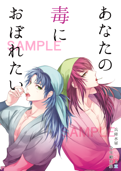 今までの水軍本でモブとして描いていた二人(特に間切)をあらためてキチンと描いてみたら…まぁ~ハマりましたね~~~。気付けば私の脳内では無邪気で破天荒な網問が間切にグイグイ迫る…という設定ができあがっておりました。こういうのを『誘い受け』って言うんですかね。大好物です( *´艸`) 間切は見た目のワイルドさに反してノミの心臓タイプで、網問はじつはそこそこ長身でかなりの食いしん坊…だったらいいなとか。