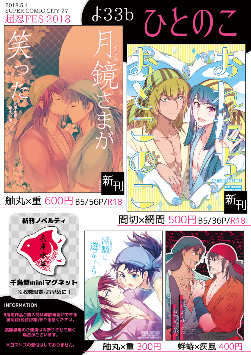 2018/5/4開催【超忍FES.2018】おしながきです。